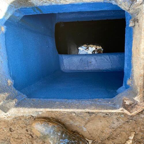 • Coating Application: A specialised chemical-resistant coating was then applied to the interior surfaces of the manholes. This coating served as a protective barrier against H2S corrosion, significantly enhancing the durability of the infrastructure and extending its operational lifespan.