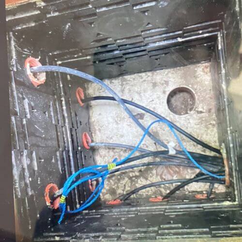 - Making Penetrations Watertight: After plugging the annulus, TSM drilled through the curing mortar to inject a structural waterproof polyurethane injection resin. This process ensured a watertight seal around the service penetrations, effectively preventing any potential water ingress.