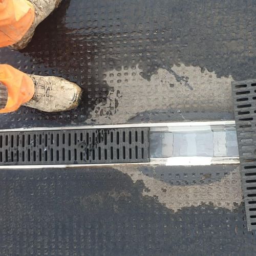 - Installing Hypalon Bandage: To provide additional waterproofing and accommodate any future movement within the Aco channels, TSM fitted a Hypalon bandage over the joints. This added layer of protection ensured the long-term effectiveness of the waterproofing system.