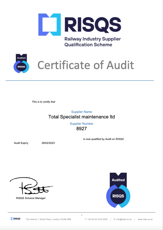 TSM Media Team We have achieve our RISQS Accreditation Total Specialist Maintenance is really pleased to achieve our RISQS Accreditation Once again, a great team effort – and another one to add to our growing list of accreditations. Tags: Accreditations