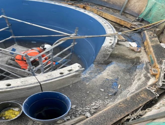 - Joint Filling: The joints between precast concrete sections were carefully filled using a high-performance concrete repair mortar. This step was essential to enhance the structural integrity of the wet well and prevent any potential weak points where corrosion could initiate.