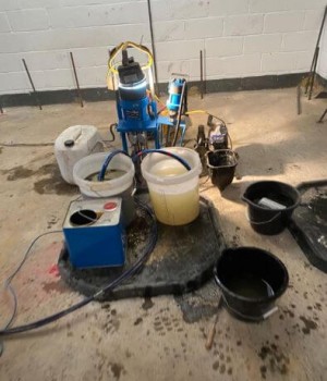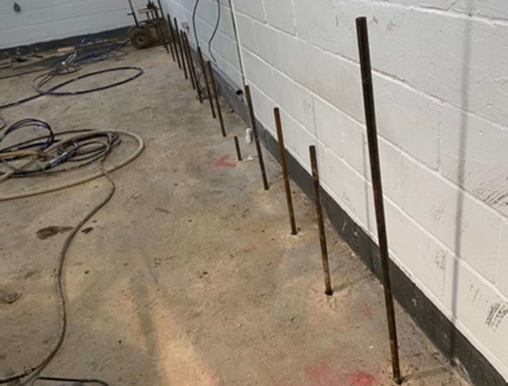 - Driving Injection Lances: TSM began by installing injection lances to a depth of 2.5 meters below both the perimeter and internal foundations of the building. This depth was determined to ensure that the stabilisation would effectively reach the most critical areas of the soil.