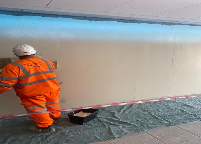 In railway infrastructure, addressing water ingress is essential to maintain the integrity and safety of structures. This project in Warrington involved Total Specialist Maintenance (TSM) collaborating with a rail contractor to remediate issues in a newly constructed subway passage beneath a railway at a train station.