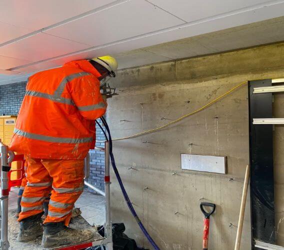 - Injecting Waterproof Resin: A specialised waterproof injection resin was applied to the back of the structure, effectively halting water ingress and creating a durable barrier against future moisture penetration.