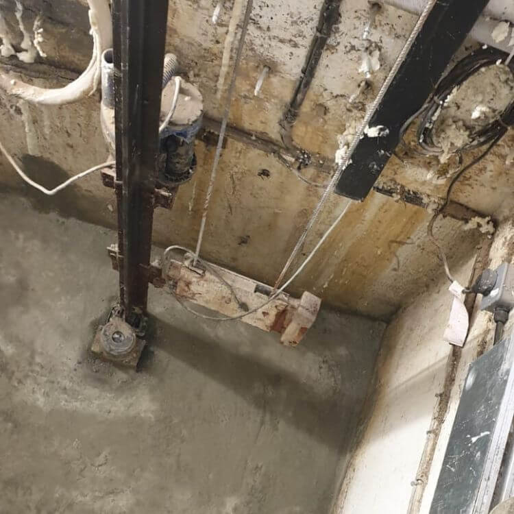 A property maintenance company had a lift engineering company carry out their 6 months service and inspection programme to an existing lift installation and witnessed water ingress coming into the lift pit. The water ingress was also causing corrosion to the lift components which left untreated would rendered the lift unserviceable.