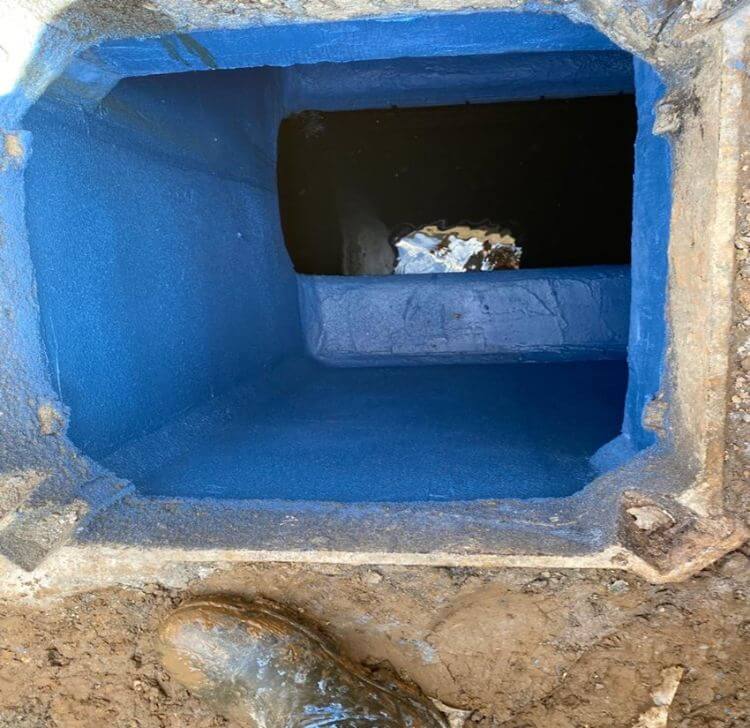 • Coating Application: A specialised chemical-resistant coating was then applied to the interior surfaces of the manholes. This coating served as a protective barrier against H2S corrosion, significantly enhancing the durability of the infrastructure and extending its operational lifespan.