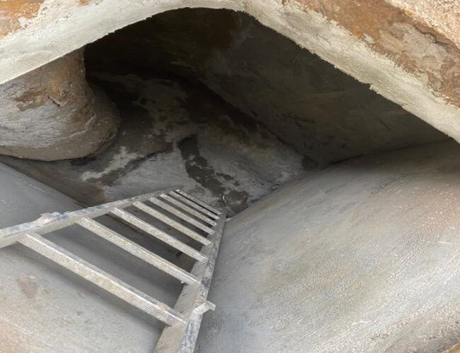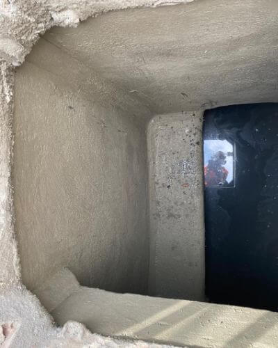 • Mechanical Preparation: The refurbishment process began with meticulous preparation of the substrate. This involved cleaning and profiling the interior surfaces of the manholes to create a mechanical key that would ensure optimal adhesion for the concrete lining.